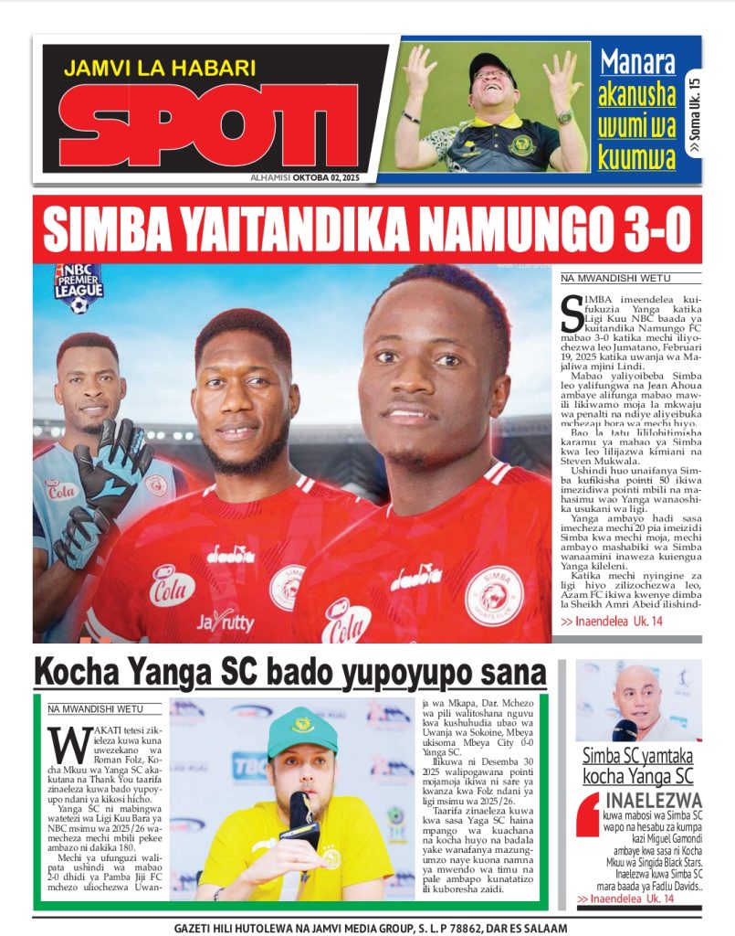 Next Post PITIA VICHWA VYA HABARI KATIKA MAGAZETI YA LEO OKTOBA 02 , 2025