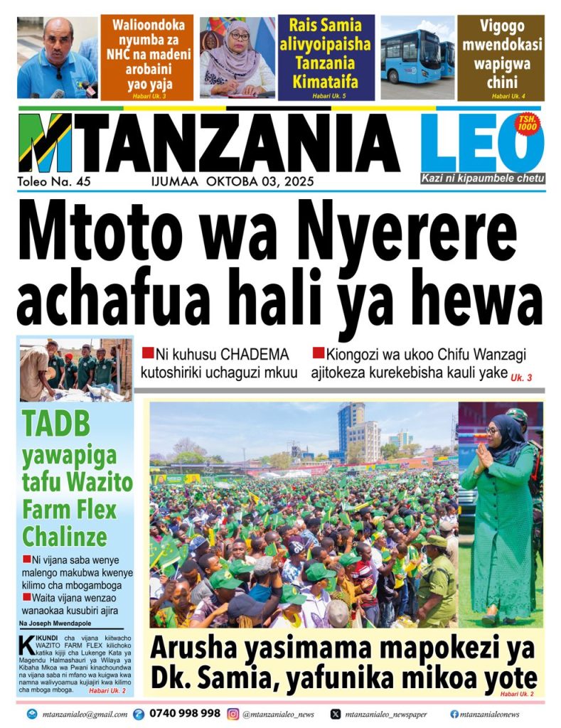 PITIA VICHWA VYA HABARI KATIKA MAGAZETI YA LEO OKTOBA 03, 2025